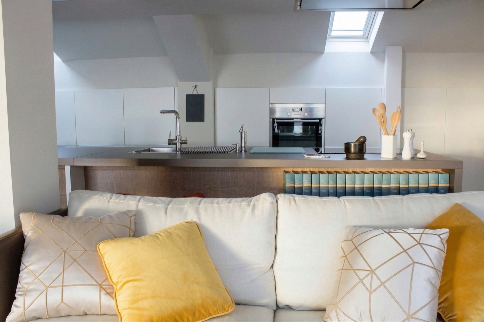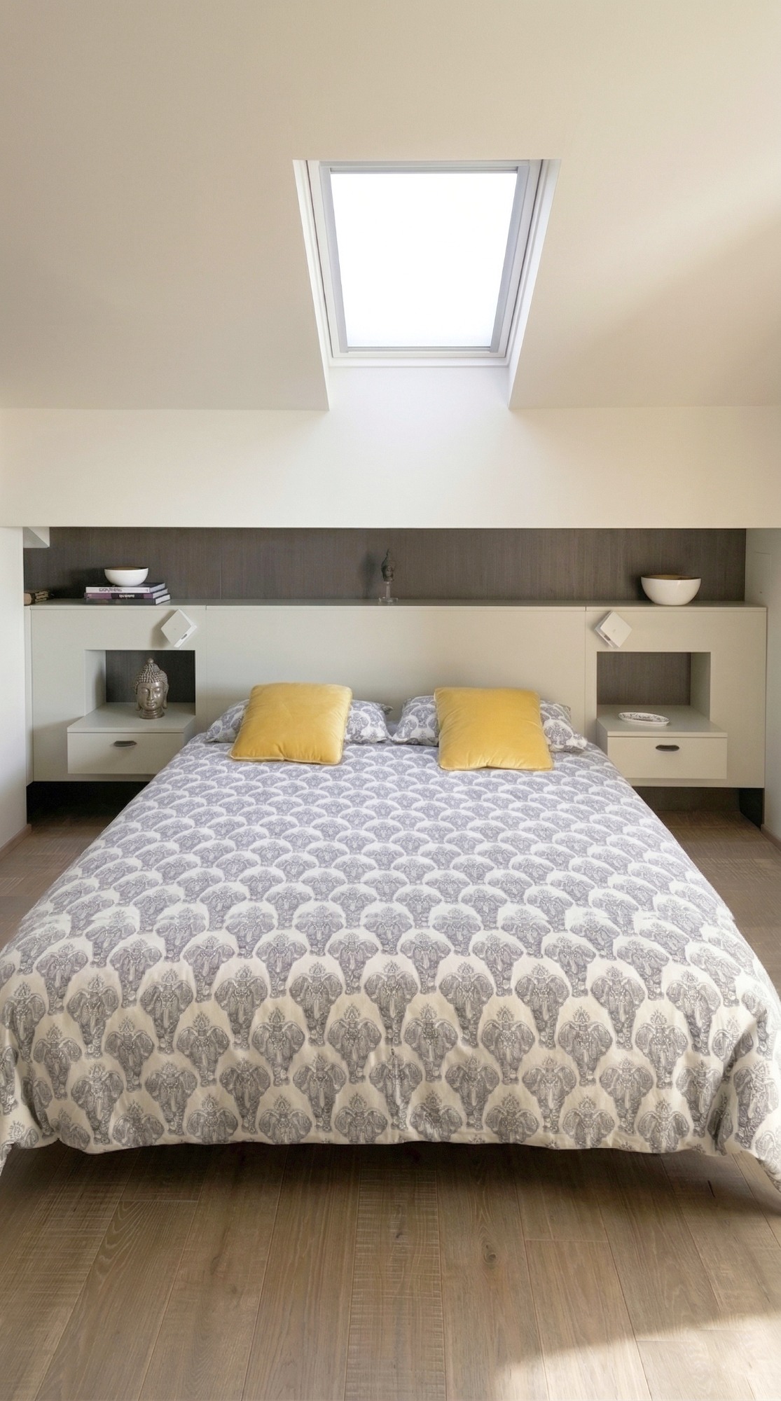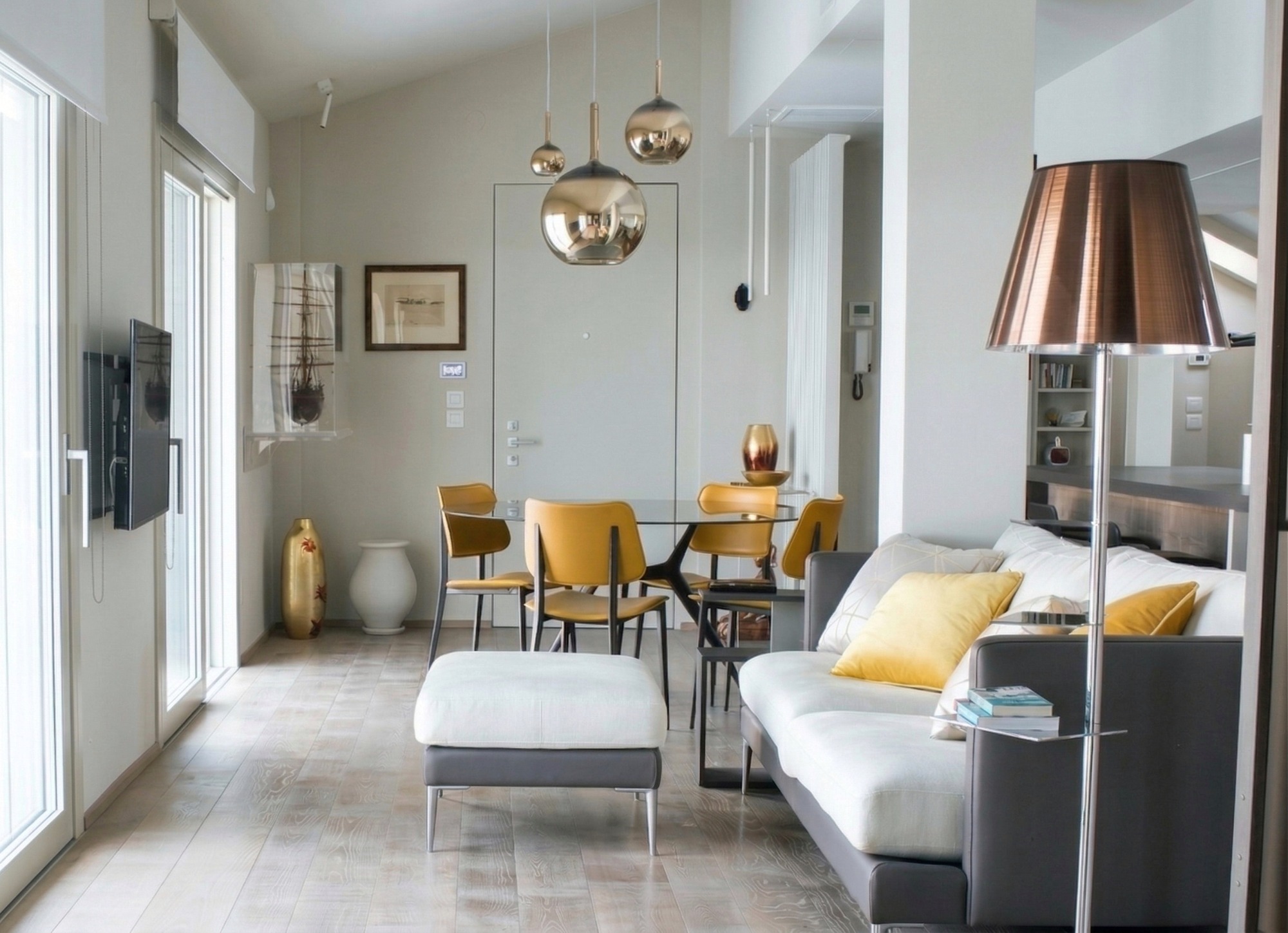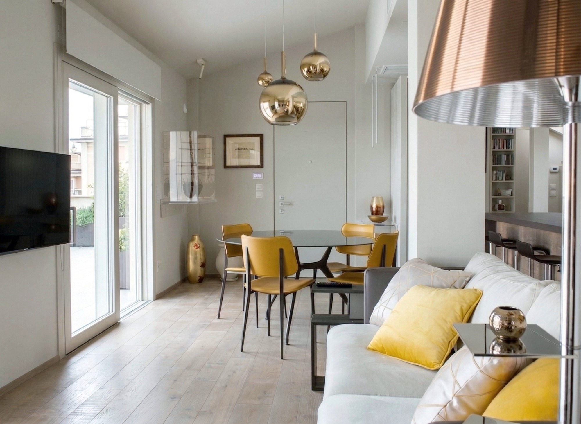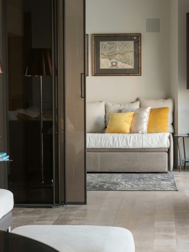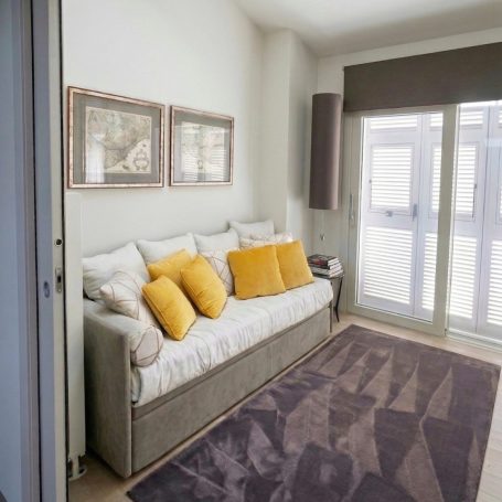 Un diseño elegante y moderno a la vez. Tonos neutros con toques de color amarillo. Hemos conseguido lo que buscaba la cliente, un espacio elegante y con carácter, atemporal, refinado y valorizado con piezas de diseño icónicas.