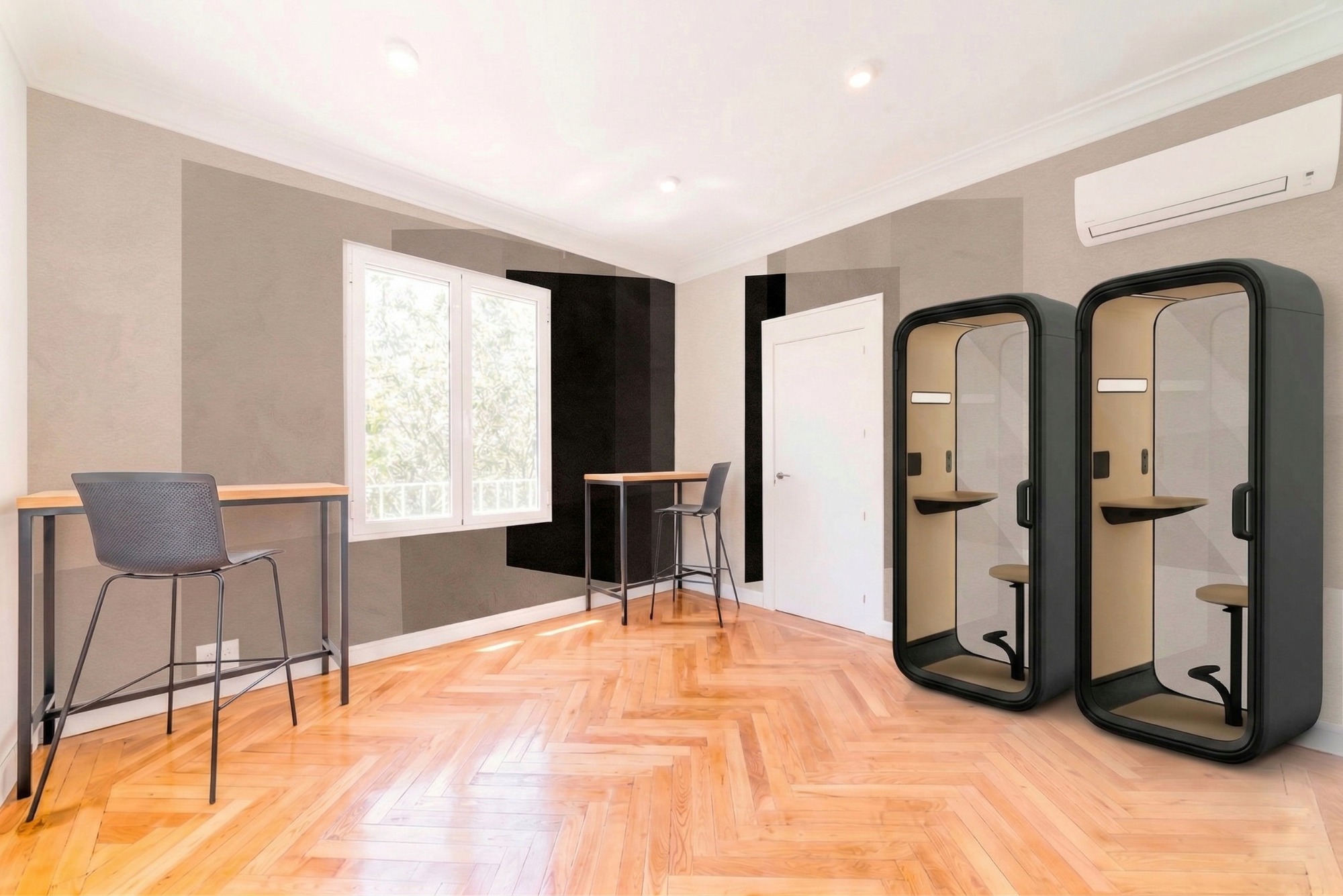 El contraste entre la elegancia de la arquitectura clásica del espacio y el diseño contemporáneo industrial de mobiliario y detalles decorativos, se juntan para conseguir un ambiente moderno y con carácter.